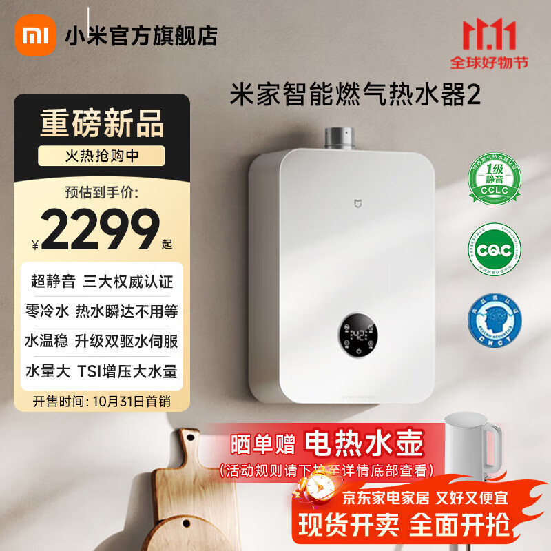 IT之家 11 月 2 日消息,小米本周推出了新一代“米家智能燃气热水器 2 静音零冷水 16L”,首发价 2299 元,京东 PLUS 用户立减 30 元,叠加国补后 1928.65 元。