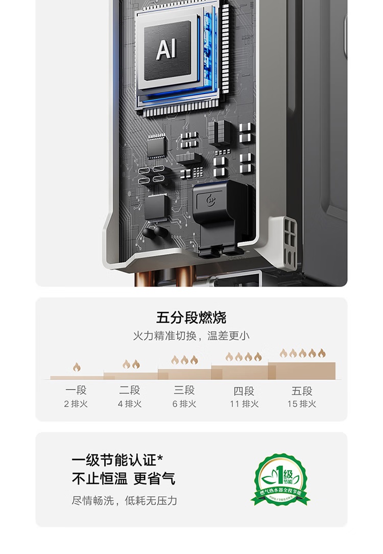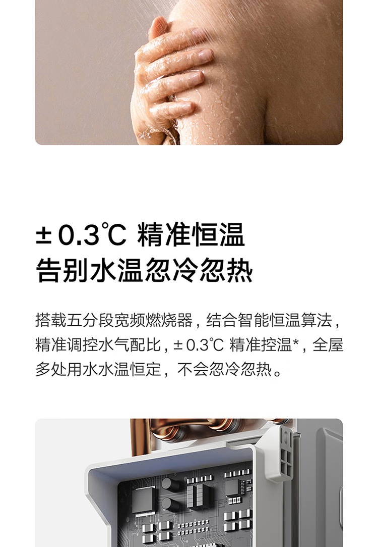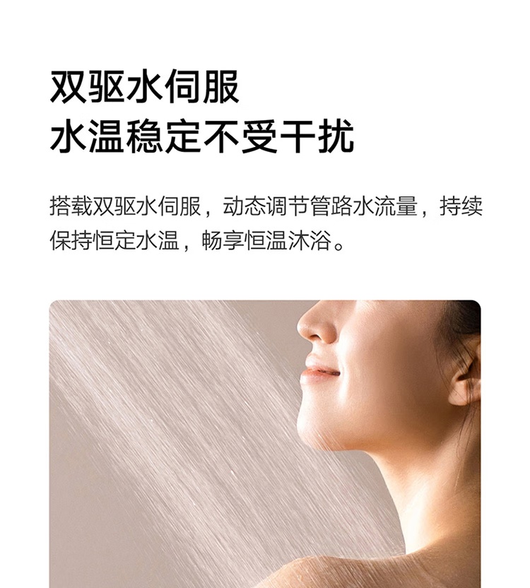 IT之家从商品页面获悉,这款热水器采用了 9 维静音降噪技术,通过 1 级静音认证;配备强劲增压大水泵、直流变频风机、全屏玻璃面板,支持双驱水伺服、±0.3℃精准恒温、全屋零冷水,支持小米澎湃智联,支持米家 App 远程操控。