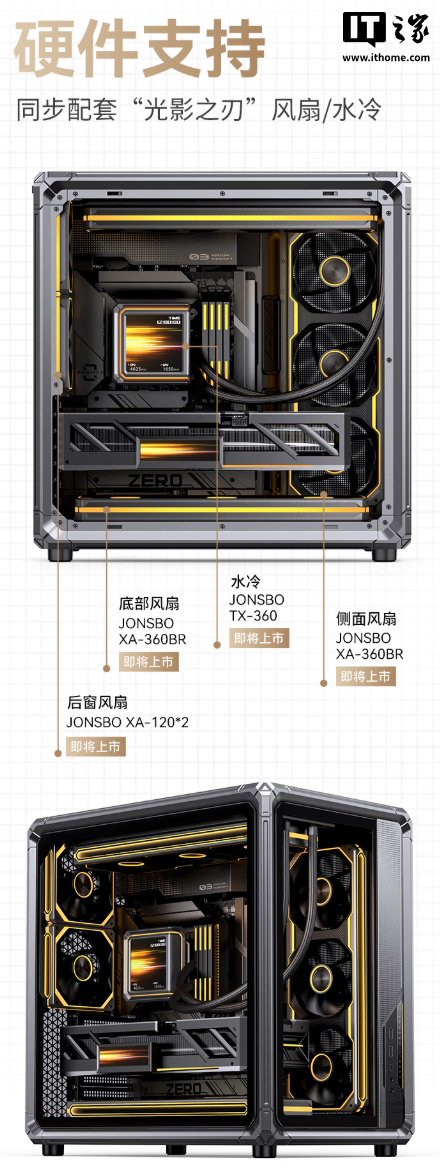 此外,这款机箱还支持“光影之刃”系列风冷 / 水冷散热器,可搭配出一套“全家桶”配置,兼容背插主板,可提供更简洁的可视化机箱,标配有显卡支架,可让 80/90 系高端显卡更加安全,玩家还可选购转换支架和 PCIe 线材将显卡竖插。