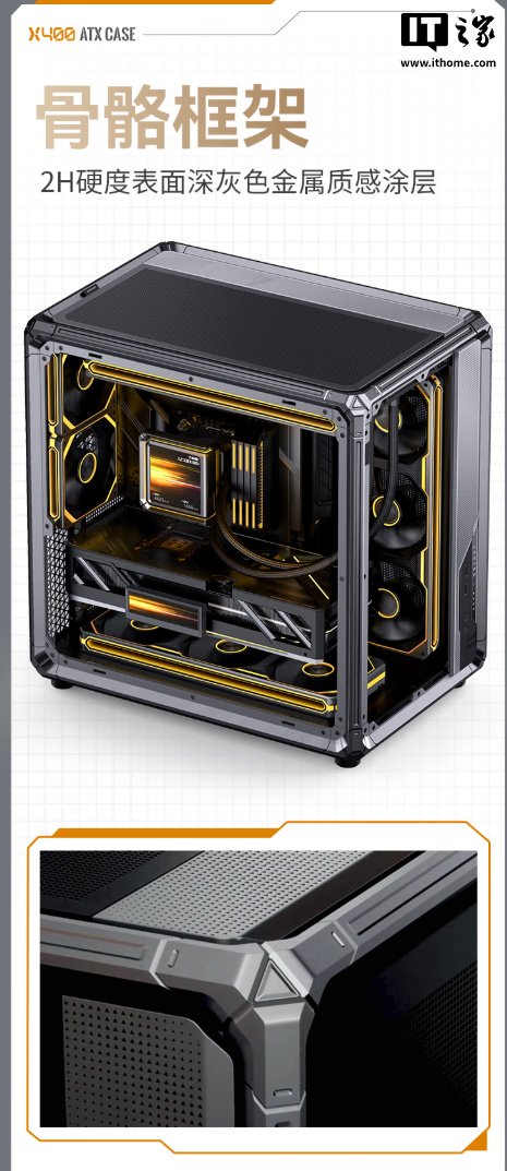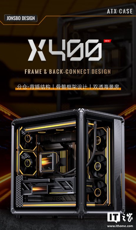 IT之家 11 月 4 日消息,乔思伯现已推出 X400 系列机箱,采用分仓式海景房架构,沿用 BO400 系列外骨骼框架造型,支持背插主板,支持免工具卡口开合顶盖、面板等,维护更加方便,售价 599 元。