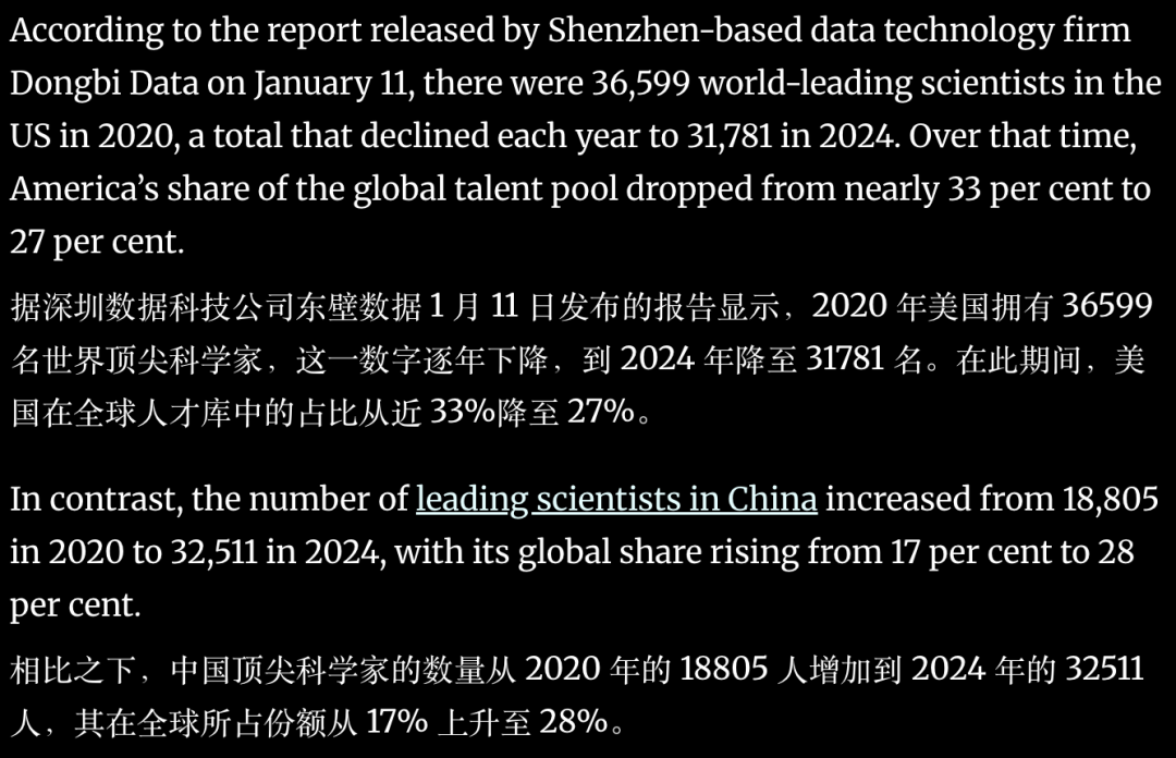 最新发布的一份报告指出,中国拥有的全球顶尖科学家人数已在 2024 年首度超越美国。