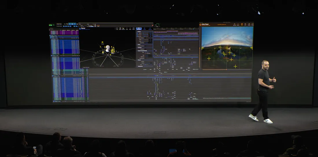 硬件方面,价值 3.3 万美元的 Blackmagic URSA Cine Immersive 摄像机成为拍摄 Apple 沉浸式视频内容的核心设备。