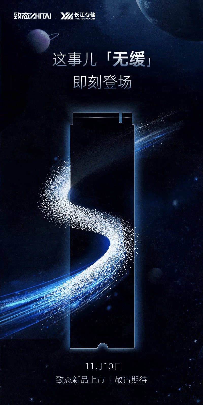 IT之家 11 月 7 日消息,长江存储旗下致态品牌今日对一款 11 月 10 日上市的新品进行了预热:
