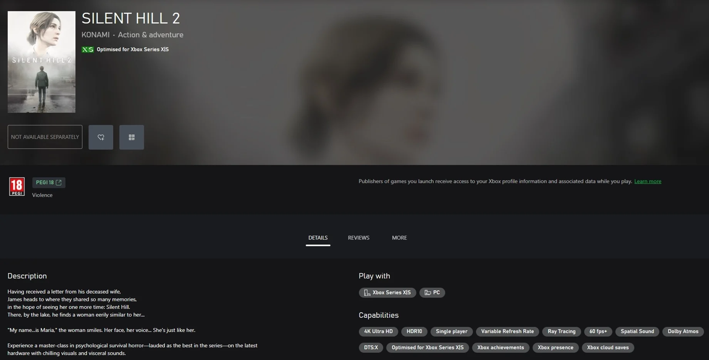 IT之家 11 月 8 日消息,据科技媒体 True Achievements 今天报道,微软商店最近的更新出现端倪,证明《寂静岭 2:重制版》游戏 Xbox Series X|S 版即将到来,有望在 11 月 21 日发售。