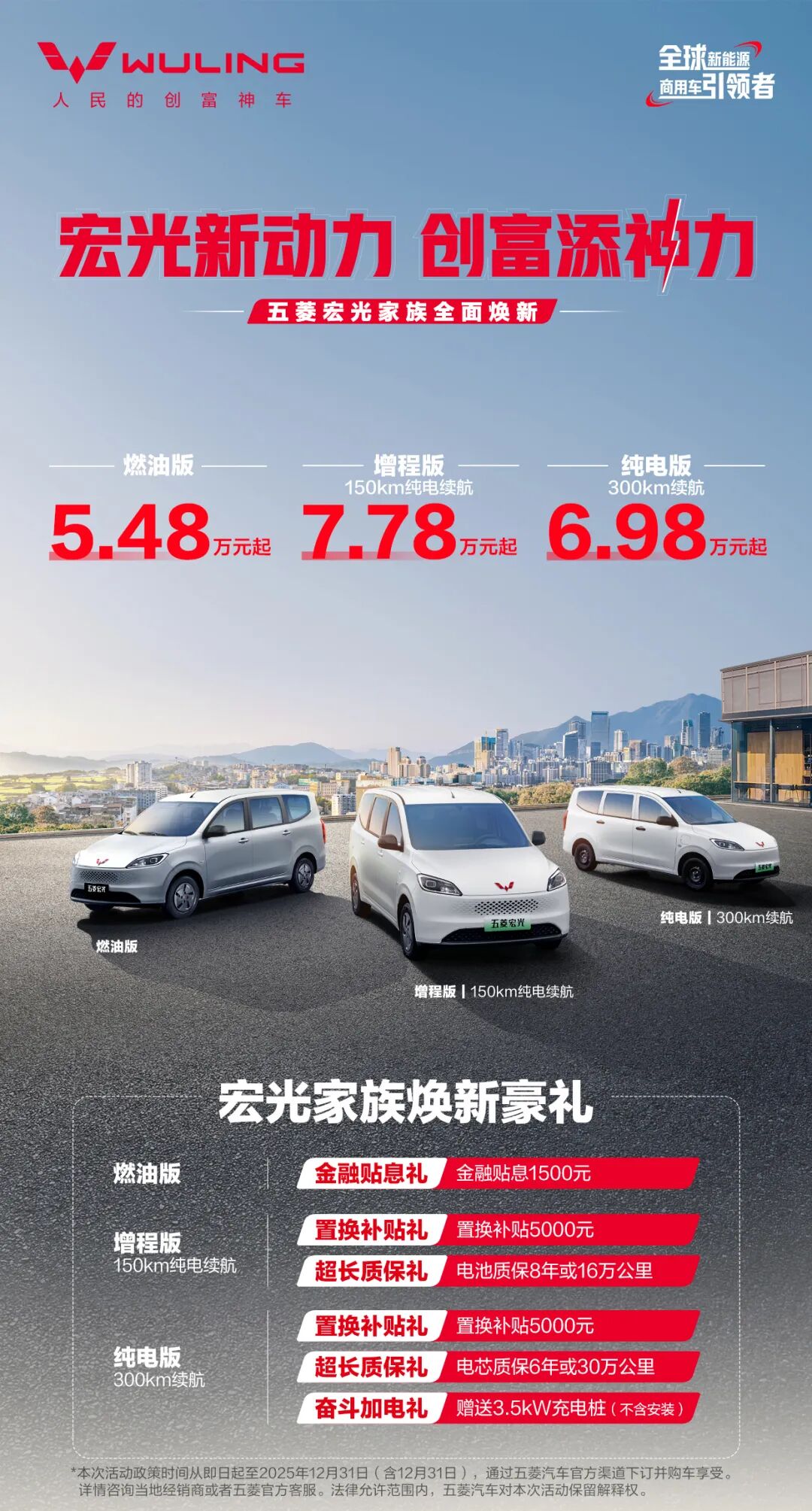 即日起至 2025 年 12 月 31 日,自官方渠道下订五菱宏光家族车型,享多重焕新礼: