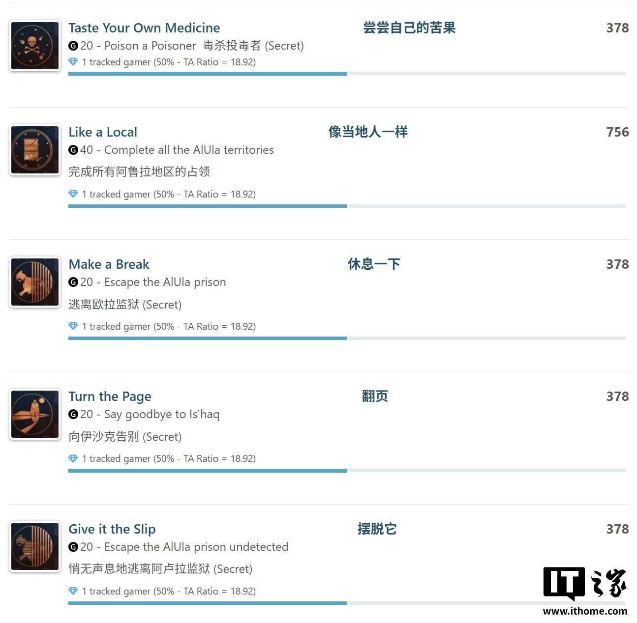 根据泄露奖杯列表我们可以看到,游戏中将有一系列兼顾叙事与玩法的挑战,“失物招领”要求玩家将所有赃物归还给名为 Hind 的角色;“很久之前”奖杯则要求玩家听遍所有民间传说,还可通过收集所有乌德琴旋律赢得“资深音乐家”奖杯。