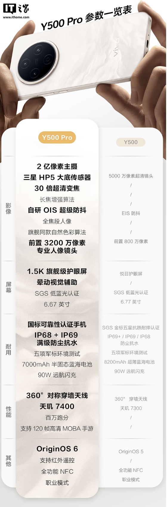 IT之家 11 月 10 日消息,vivo Y500 Pro 手机现已发布,搭载联发科天玑 7400 芯片,拥有 6.67 英寸 1.5K 旗舰级护眼屏,全局峰值亮度可达 1600 尼特,内置 2 亿像素三星 HP5 大底主摄,目前已在京东平台开启预售,11 月 14 日正式开售。