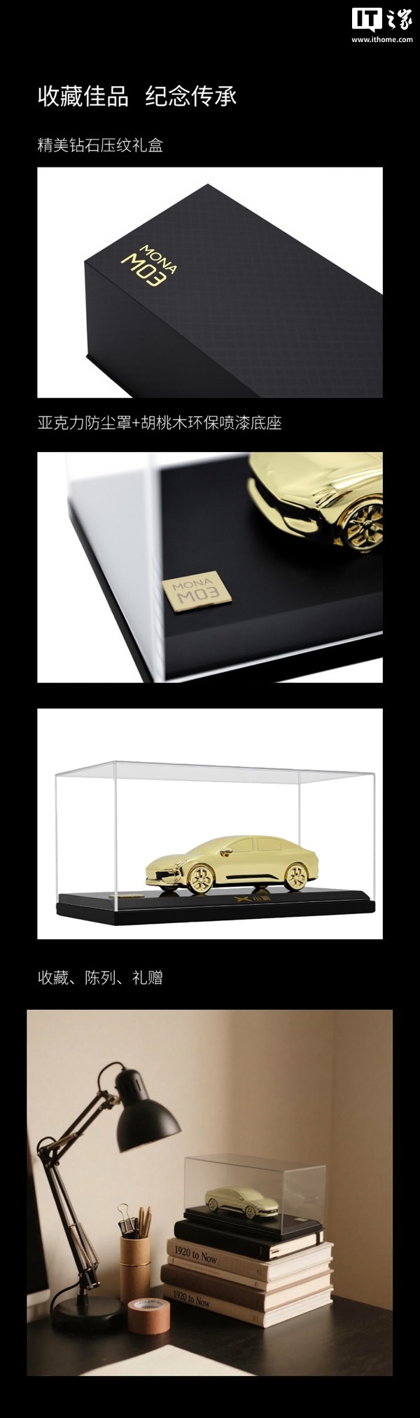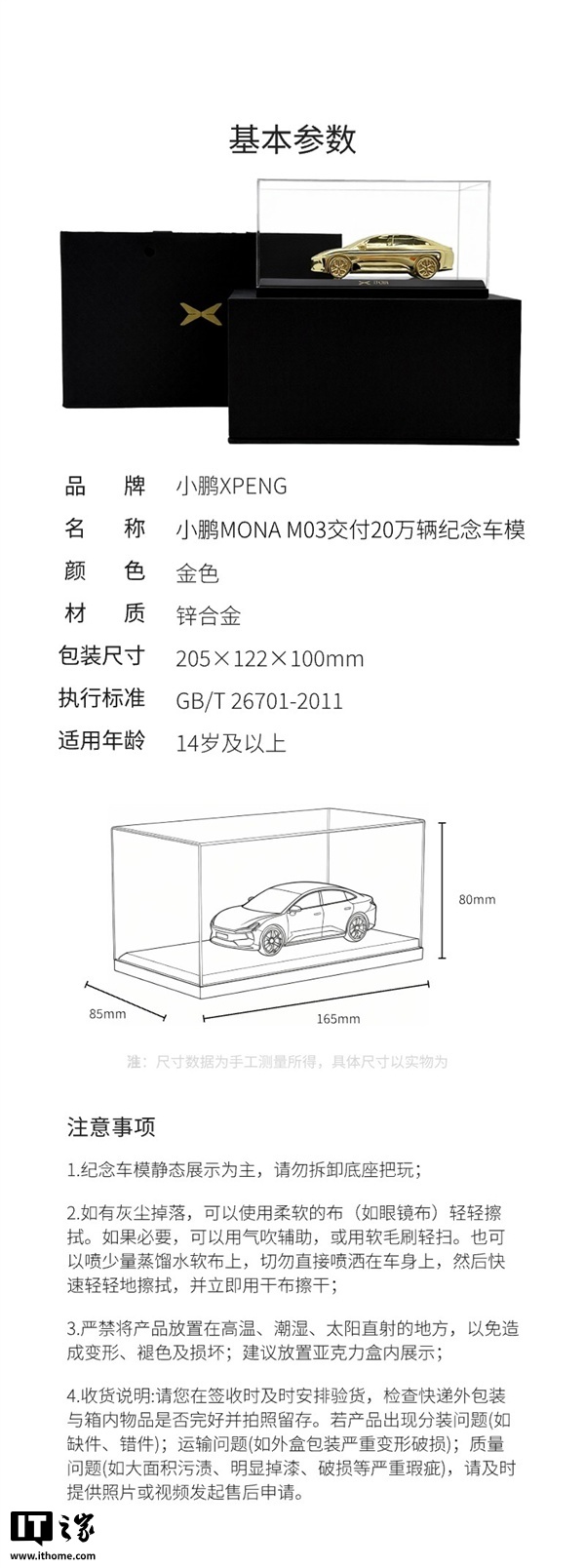 据IT之家了解,这款纪念车模售价为 398 元,小鹏车主还可使用 3980 积分进行抵扣,售完即止。车模以小鹏 MONA M03 为原型,通过流线设计艺术精准还原了原车的精美线条,材质采用锌合金精密铸造,并搭配 24K 真金电镀,展现出高端质感。