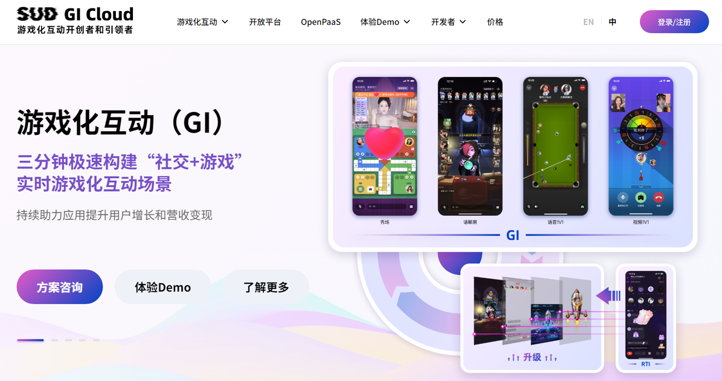 SUD 忽然科技是游戏化互动(GI)全球云服务商,旗下拥有游戏化互动云服务(GI Cloud),官方宣称正在服务 1000+ 全球头部应用,覆盖 3 亿 + 终端用户。