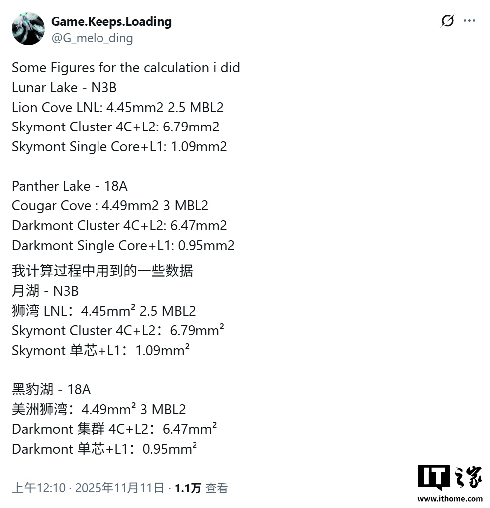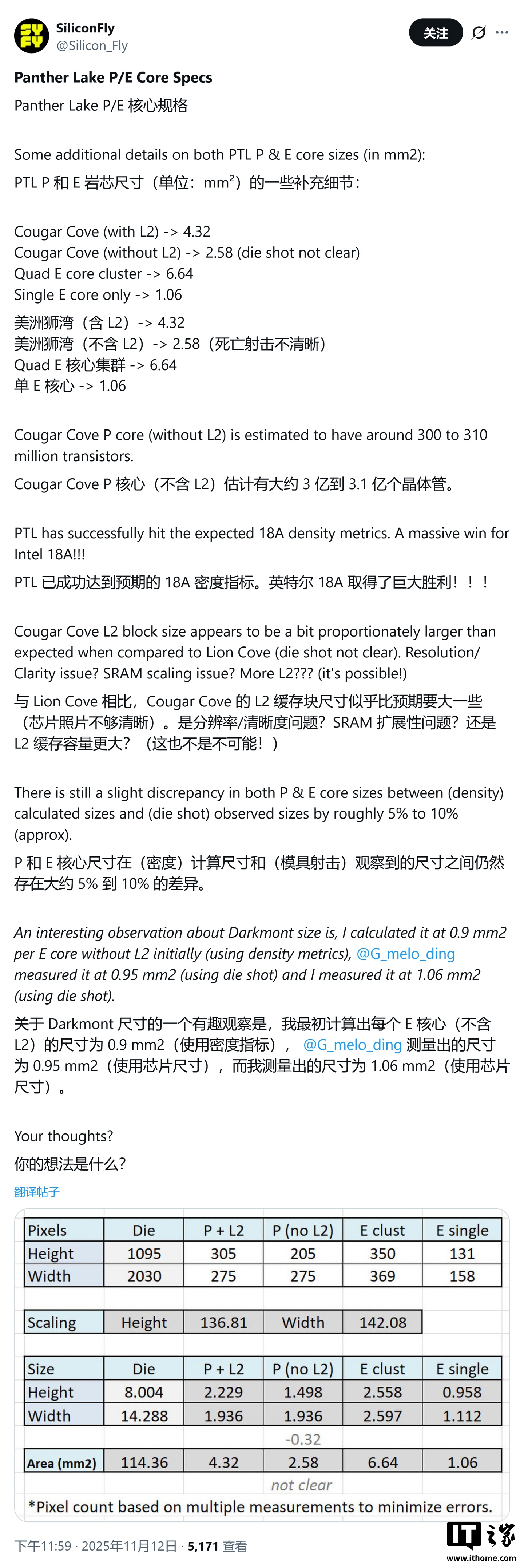 IT之家 11 月 13 日消息,科技媒体 Wccftech 昨日(11 月 12 日)发布博文,报道称英特尔 Panther Lake 处理器(预计命名为酷睿 Ultra 3 系列)迎来关键进展,其核心组件“计算单元”(Compute Tile)的 Die Shot 照片首次被曝光。