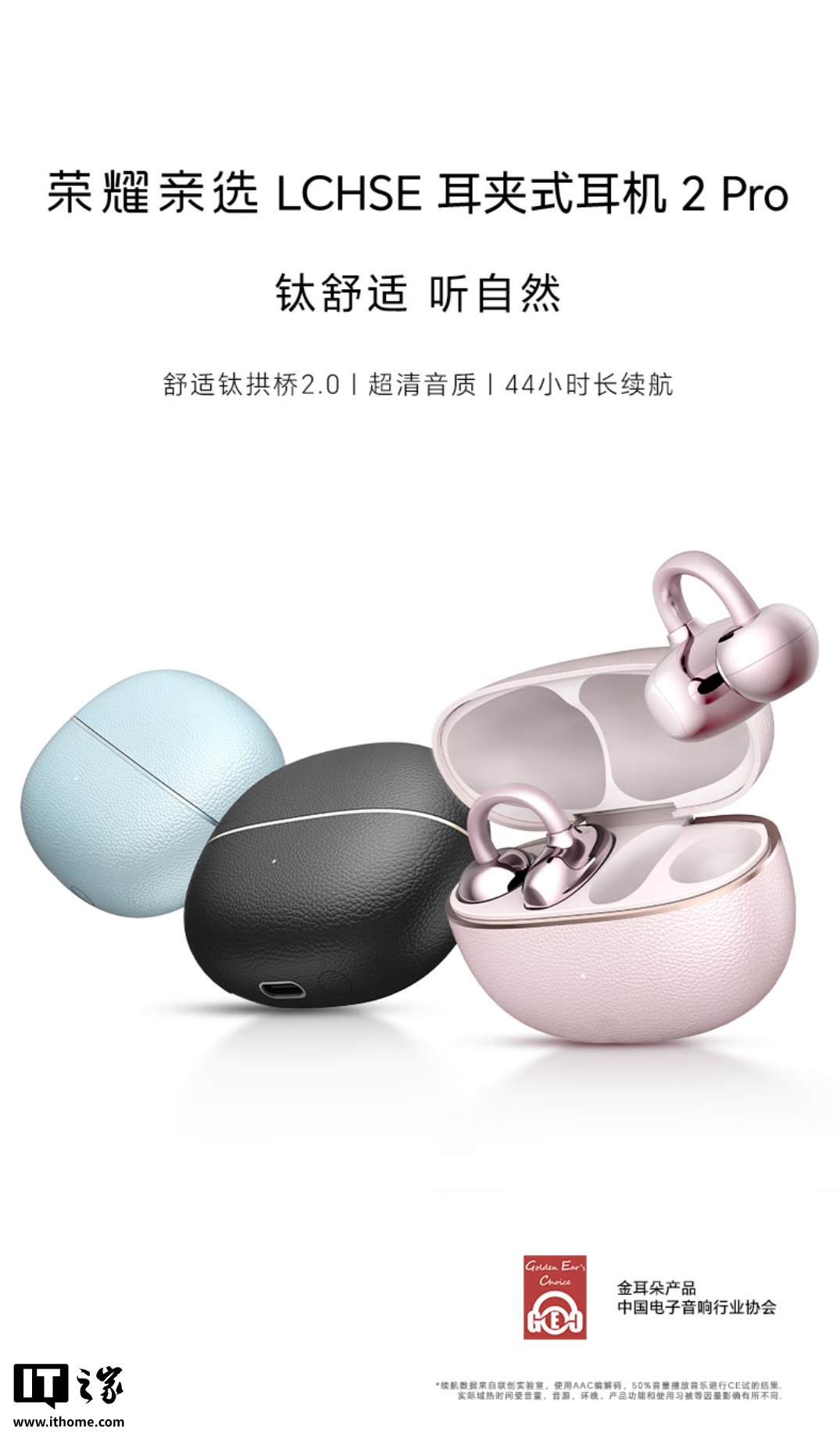 IT之家 11 月 13 日消息,荣耀亲选 LCHSE 耳夹式耳机 2 Pro 现已开启新品预约,采用开放式架构设计,内置舒适钛拱桥 2.0,续航可达 44 小时。