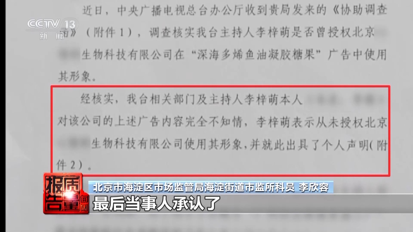 此类仿冒行为不仅涉及医疗专家,也波及公众人物。北京市海淀区市场监管局曾查处一起案件:某商家在直播间及短视频中,使用 AI 技术伪造中央广播电视总台主持人李梓萌的形象,宣称一款鱼油产品具有医疗功效。