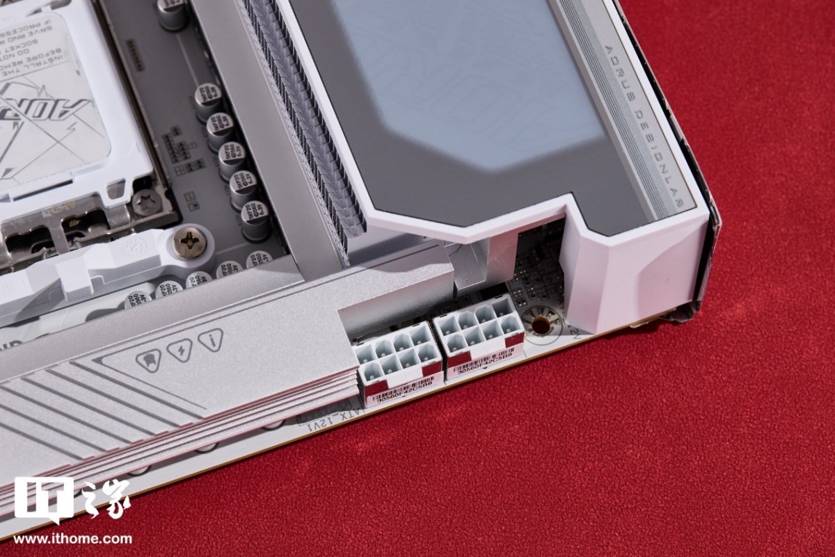 技嘉 X870E X3D 超级冰雕主板采用 18+2+2 相供电设计,CPU 部分为双 8pin 供电接口。