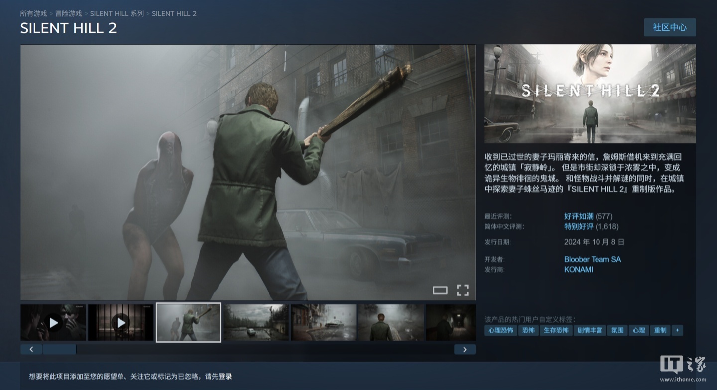 作为参考,《寂静岭 2:重制版》游戏于 2024 年 10 月 8 日发布,登陆 PC、PS5 平台,当时科乐美给出的发行说明写道,这款游戏将在主机端独占 PS5 一年。