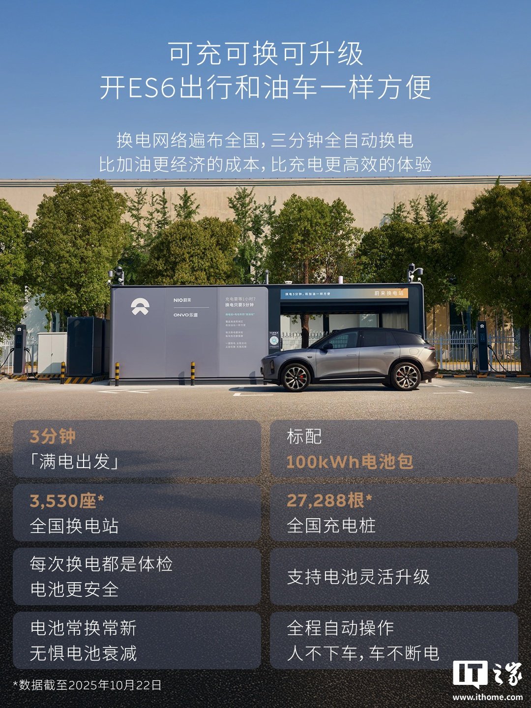 据IT之家此前报道,蔚来 ES6 在去年 5 月 27 日累计交付量已经达到 20 万辆。该车于 2018 年 12 月发布、2019 年 6 月开启用户交付,并于 2023 年完成基于 NT 2.0 平台的更新换代。今年 5 月,蔚来新 ES6 汽车上市,整车购买 33.8 万元起、电池租用方案 26.8 万元起。