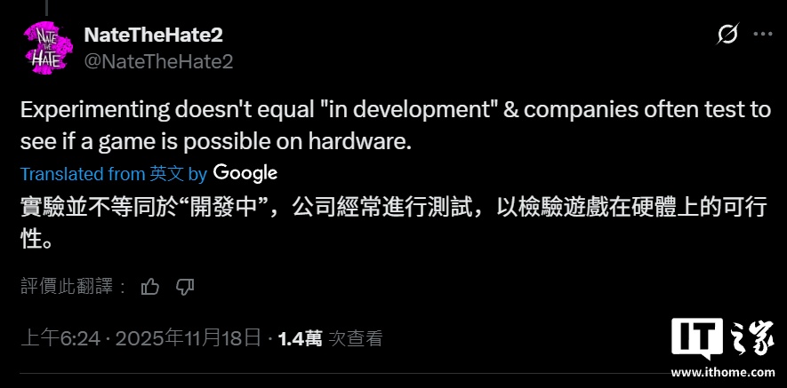 根据 Nate the Hate 的说法,R 星目前只是在探索《GTA6》是否能在 Switch 2 上运行,但这并不代表游戏一定会有 Switch 2 版本,所谓“实验”并不意味着 R 星已着手移植,只代表他们正在评判 Switch 2 的硬件机能及游戏规模。