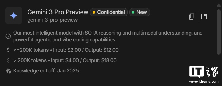 IT之家 11 月 18 日消息,谷歌即将发布其最新大型语言模型 ——Gemini 3,该模型将在未来数小时至数日内正式上线。在正式发布前,Gemini 3 Pro Preview 模型已在 AI Studio 平台上上线。AI Studio 是谷歌面向开发者、研究人员及学生推出的开发平台,支持用户基于 Gemini 系列模型构建各类应用。