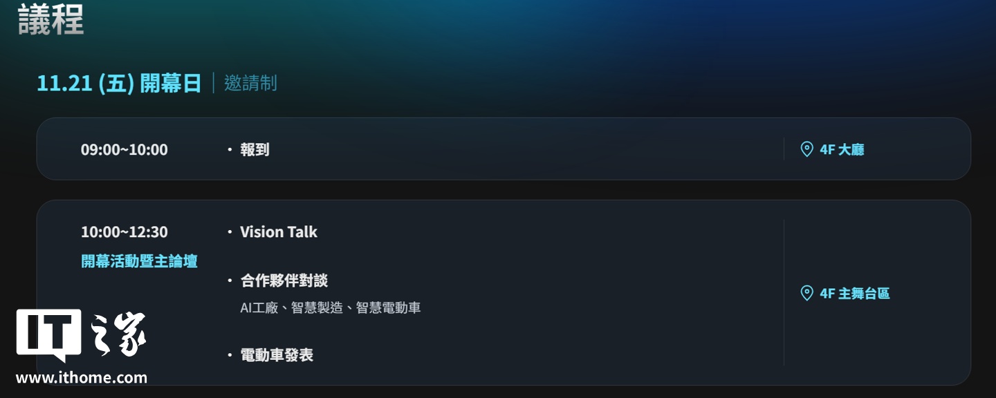 IT之家 11 月 19 日消息,HHTD 25 鸿海科技日将于 11 月 21~22 日举行,公布鸿海的最新技术和产品。