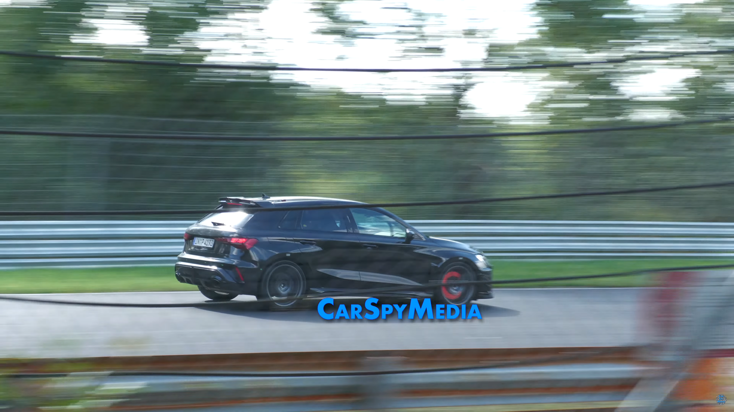 据报道,这台斩获多项大奖的 2.5 升涡轮增压五缸发动机将不会平淡地退出历史舞台,新款 RS3 GT 原型车现已现身德国纽北赛道,这辆车在赛道上被逼至性能极限,以极快的速度在直线赛道上疾驰,并在弯道上连续高速过弯,刹车盘“被烧得通红”。