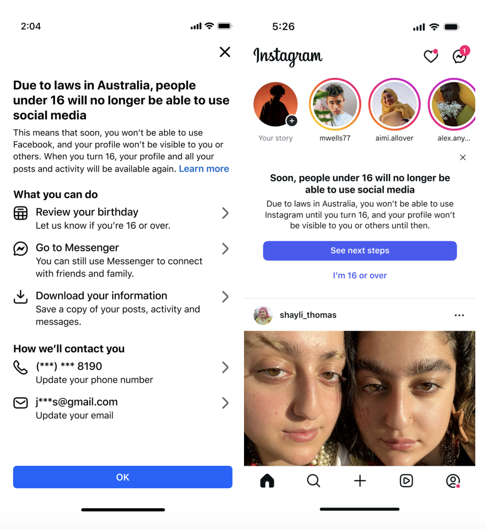 IT之家 11 月 20 日消息,据 Guardian 昨天报道,Meta 公司现已开始在澳大利亚境内为 16 岁以下的 Facebook、Instagram 用户发出通知,告知他们的账户将会被停用。