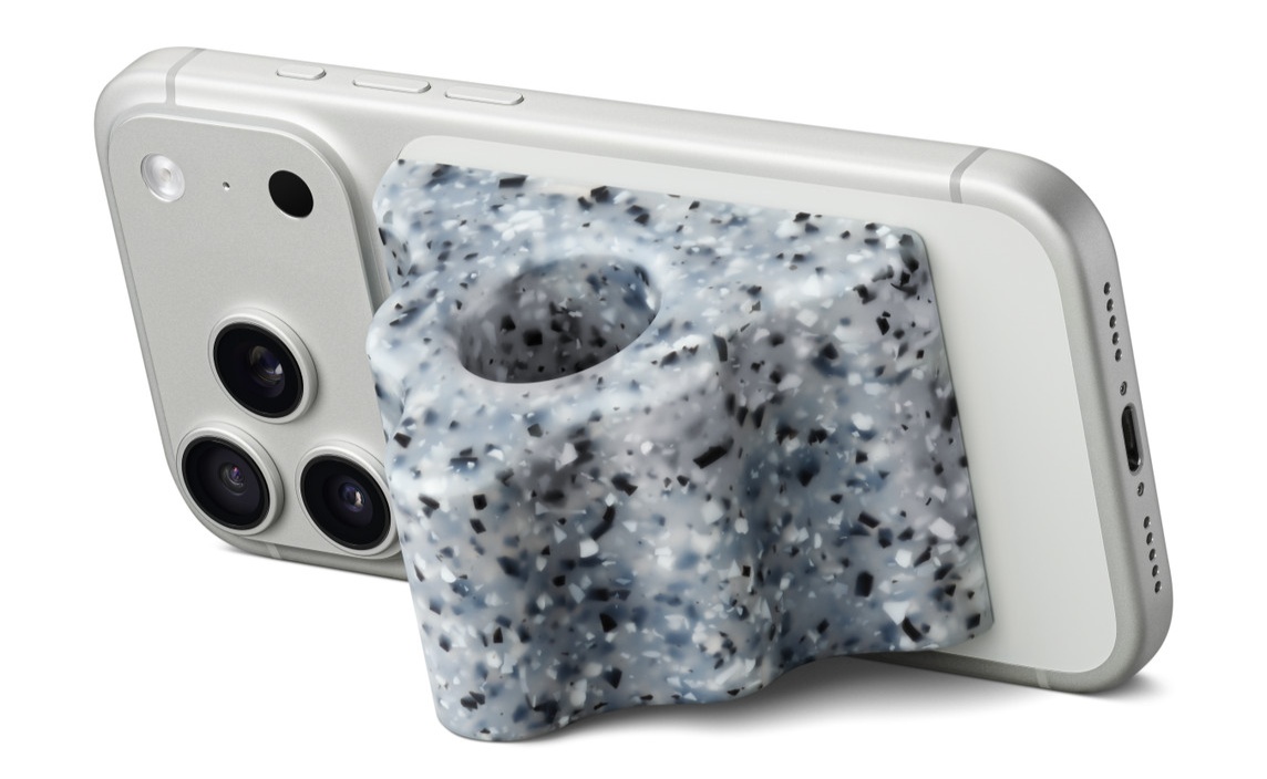 这款配件专为兼容 MagSafe 的 iPhone 设计,售价 70 美元(IT之家注:现汇率约合 498 元人民币),提供“Chartreuse”(一种鲜亮的青柠色)和“recycled crater”(一种类似花岗岩的再生材料颜色)两种颜色。