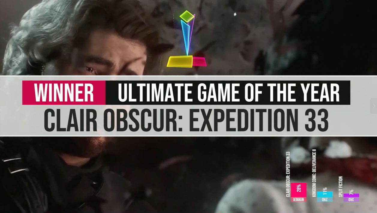 IT之家 11 月 21 日消息,在今日举行的颁奖典礼上,《光与影:33 号远征队》击败了《双影奇境》《死亡搁浅 2:冥滩之上》等其余 11 个提名者,摘获今年的金摇杆终极年度大奖。