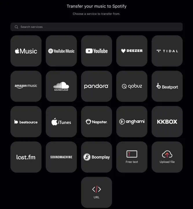 该功能已陆续向所有 Spotify 用户推出,并可在移动端应用的「你的资料库」页面底部找到「导入你的音乐」入口。用户点选后即可按照指引连接 TuneMyMusic,然后选择来源平台,将原有播放清单复制至 Spotify。