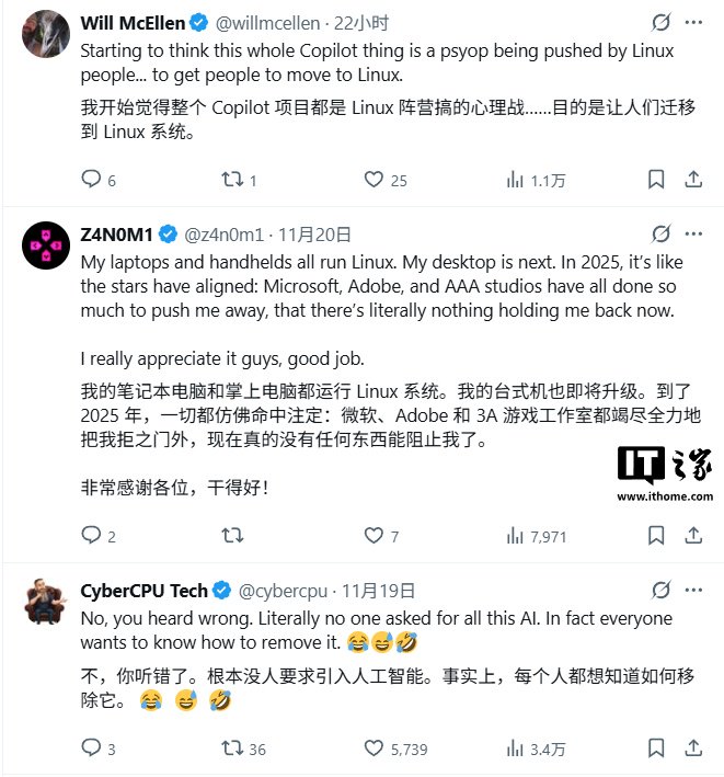 IT之家 11 月 21 日消息,科技媒体 NeoWin 昨日(11 月 20 日)发布博文,报道称微软近期大力推广其 AI 助手 Copilot,却在社交媒体上遭遇了用户的猛烈批评和普遍抵制。