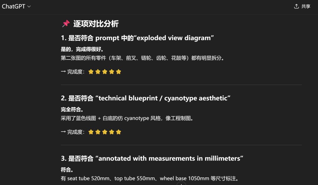 而 ChatGPT 也对照要求进行了逐项打分,最终认定:完成度确实很高。