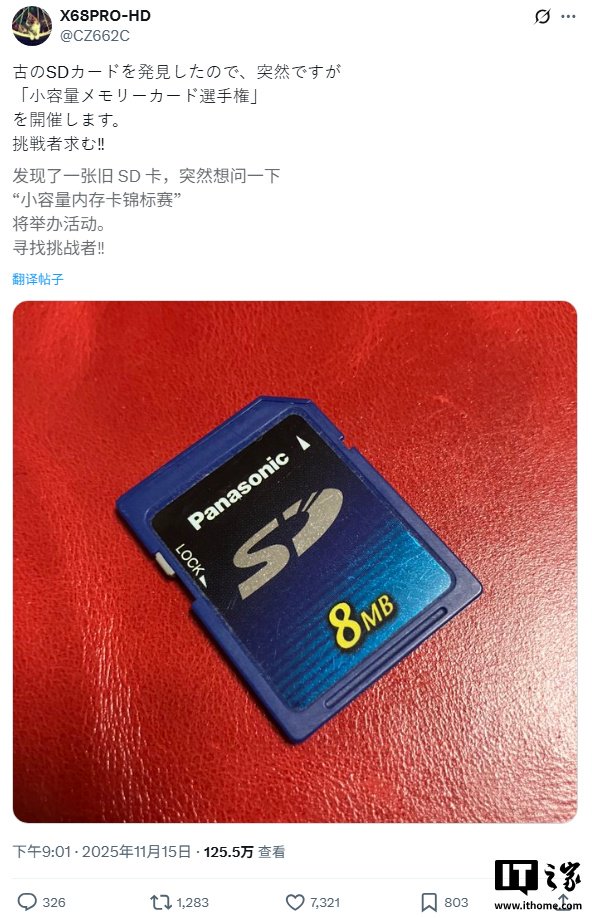 IT之家 11 月 22 日消息,据 Tom's Hardware 今日报道,日本上周举办了一场“超小容量存储卡大赛”吸引了众多复古计算机爱好者参与,比赛结果现已揭晓。