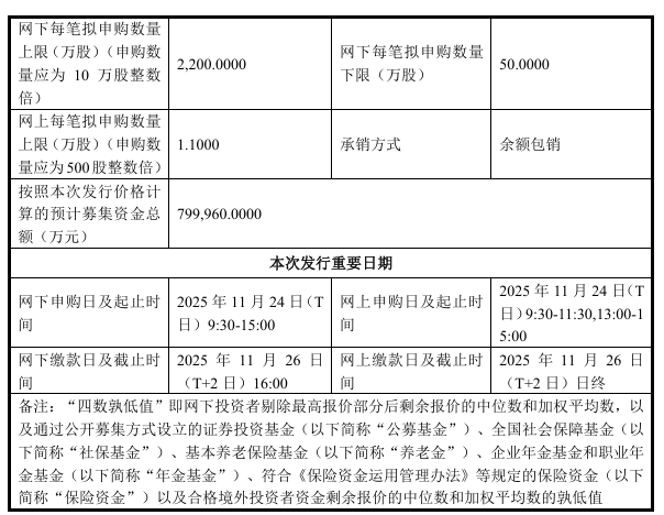 本次网上发行与网下发行将于 2025 年 11 月 24 日 (T 日) 分别通过上交所交易系统和互联网交易平台实施。发行价格为 114.28 元 / 股,预计募集资金总额为 80 亿元,扣除发行费用后,预计募集资金净额为 75.76 亿元。