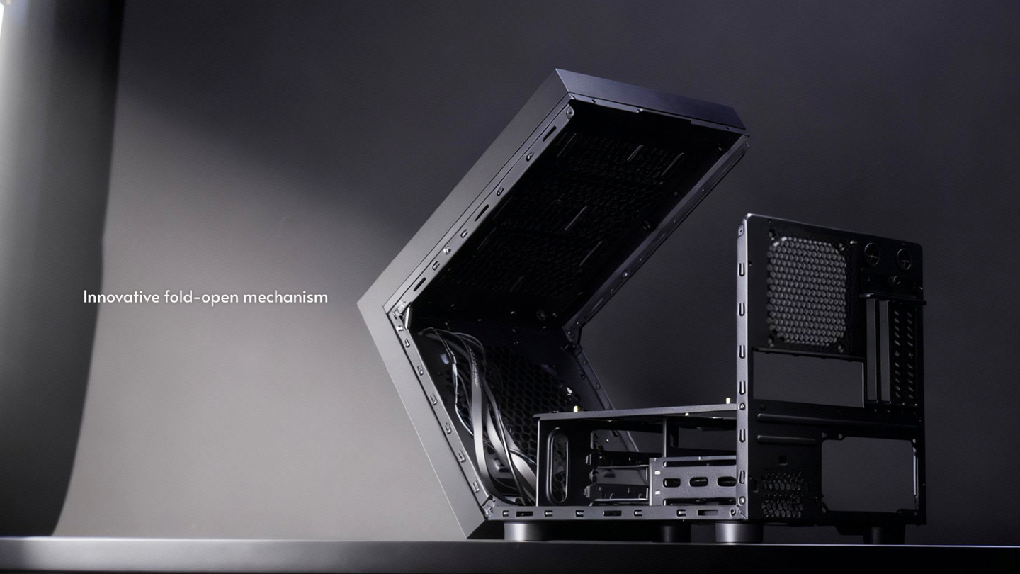 Chieftec The Cube 机箱的另一特色是其前板和上盖为一体式结构,支持“前仰”开启以便安装顶部散热系统等硬件,这种设计在目前的产品中较为少见。不过其左右两侧中仅有左侧面板具有小规模开孔,这影响了高性能硬件的散热表现。
