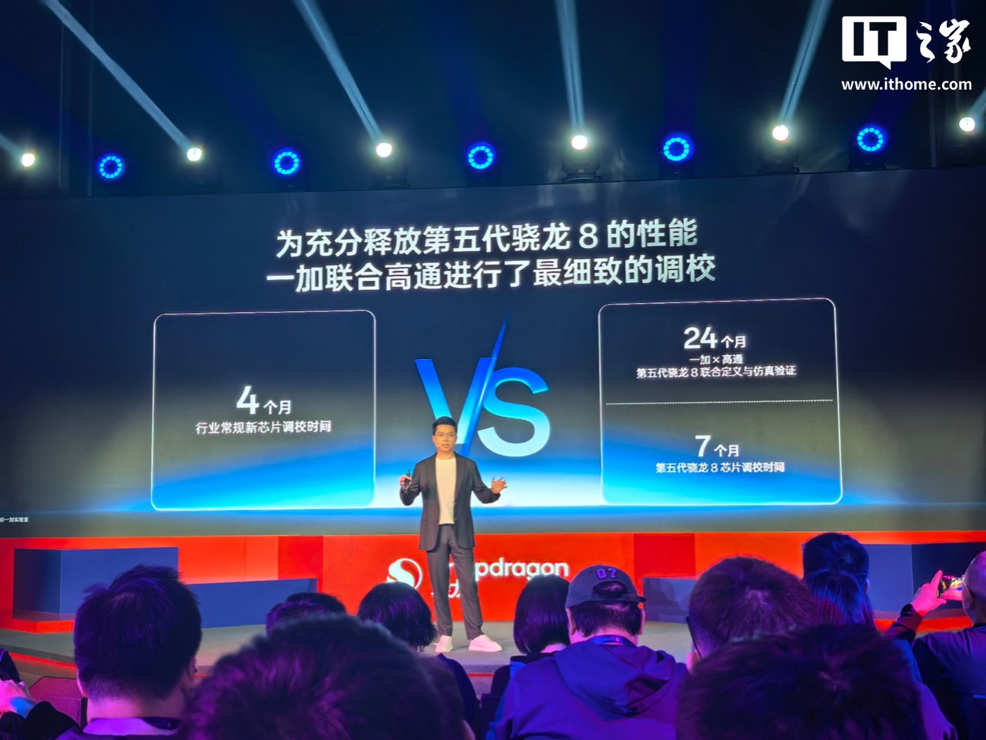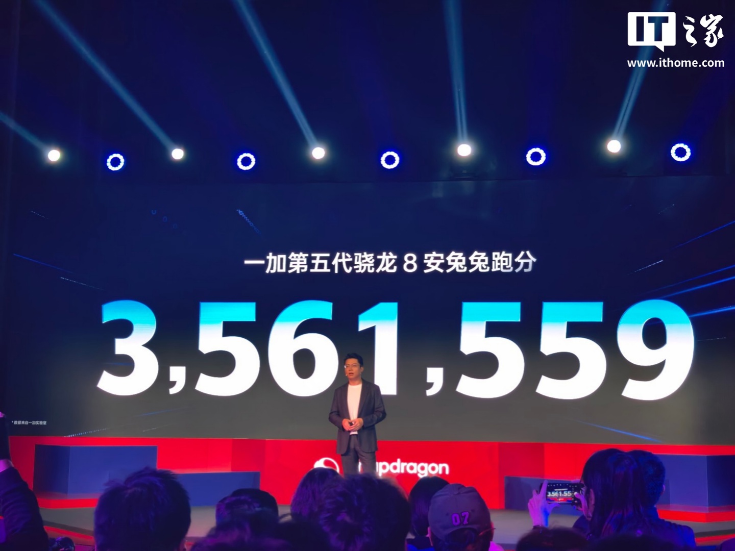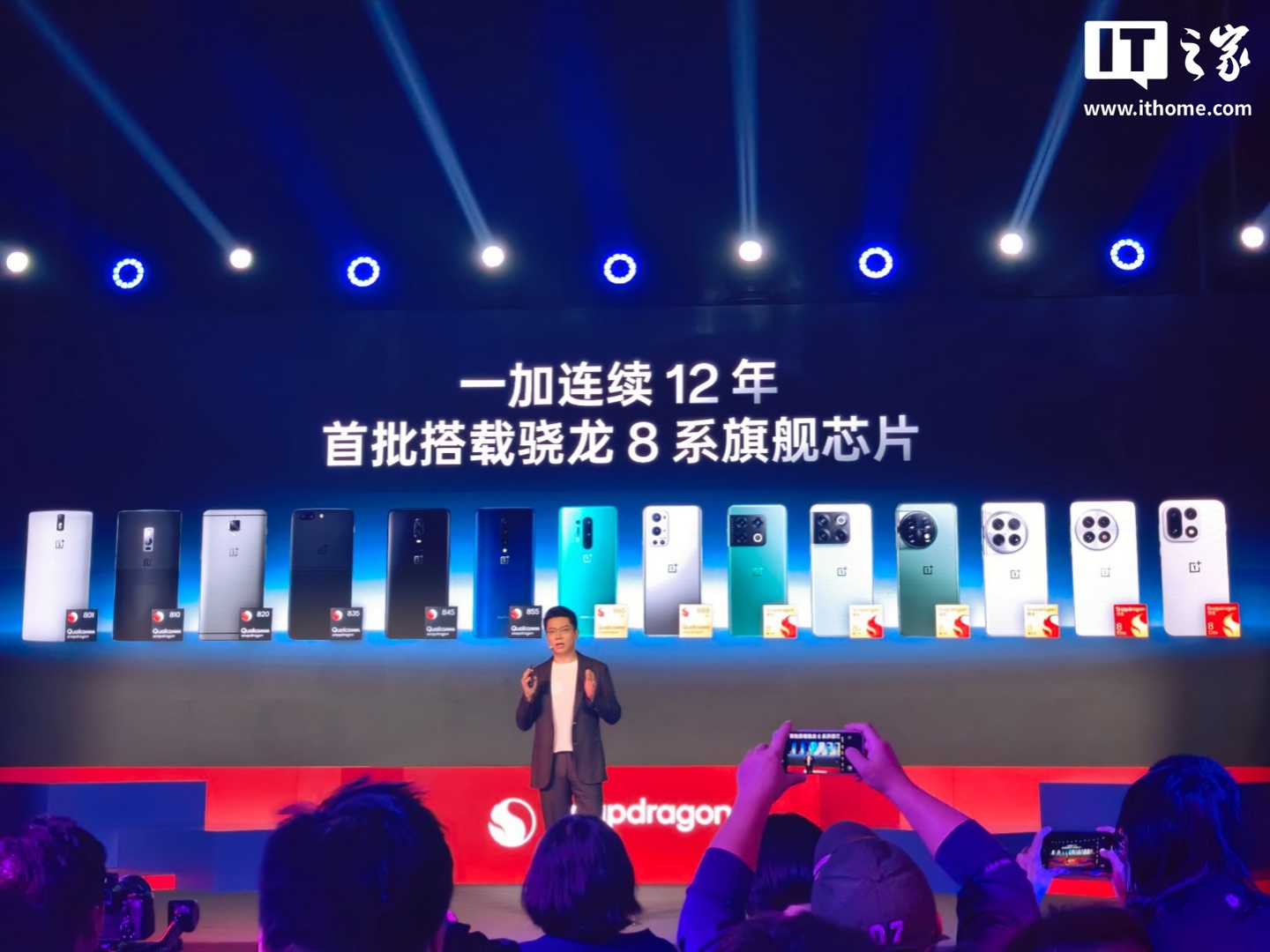 IT之家 11 月 26 日消息,在今日的高通第五代骁龙 8 发布会上,一加中国区总裁李杰现身,宣布一加将全球首发第五代骁龙 8 处理器。