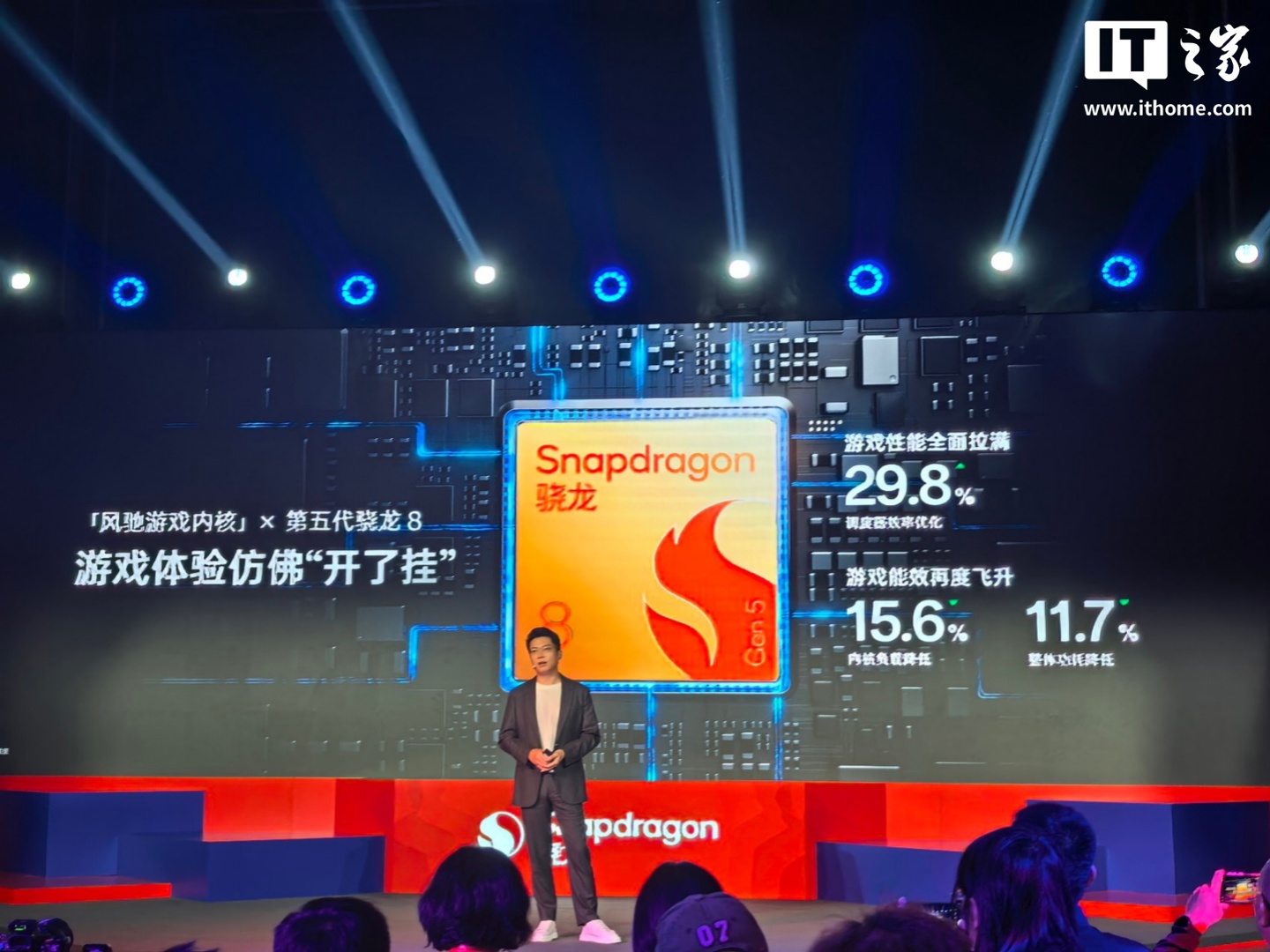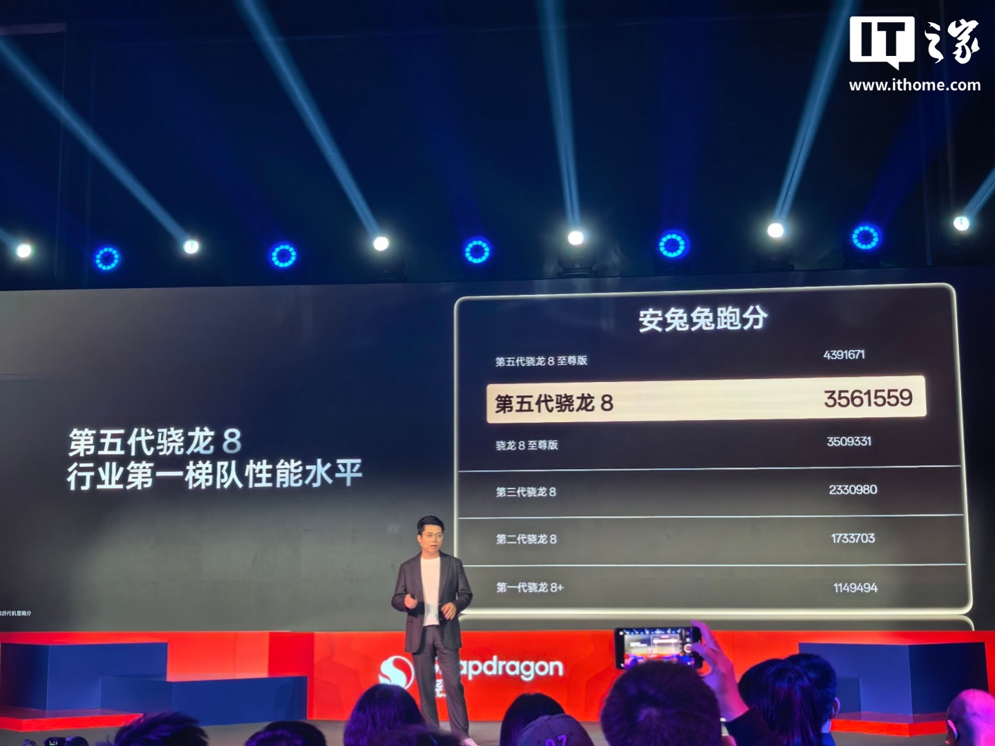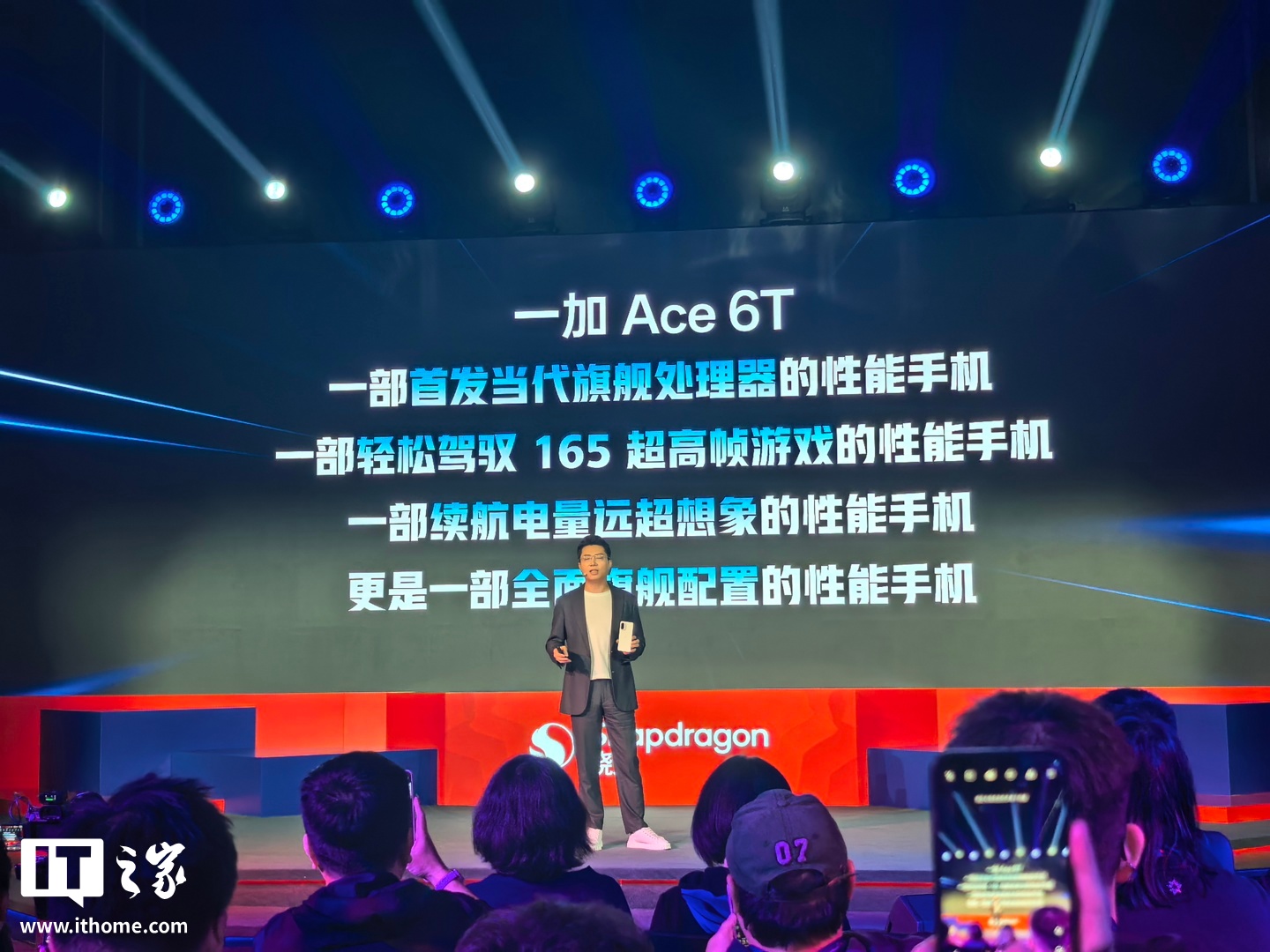 IT之家 11 月 26 日消息,在今日的高通第五代骁龙 8 发布会上,一加中国区总裁李杰现身,宣布一加将全球首发第五代骁龙 8 处理器。