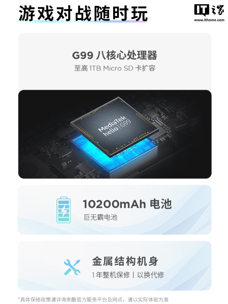 来酷平板 12.7 采用金属结构机身、搭载联发科 Helio G99 芯片、内置 10200mAh 电池,支持应用分屏、大字屏显、存储扩容(至高 1TB Micro SD 卡扩容)等功能。该平板前置 800 万像素摄像头、后置 800 万像素摄像头,配备 18W 快充电源适配器。