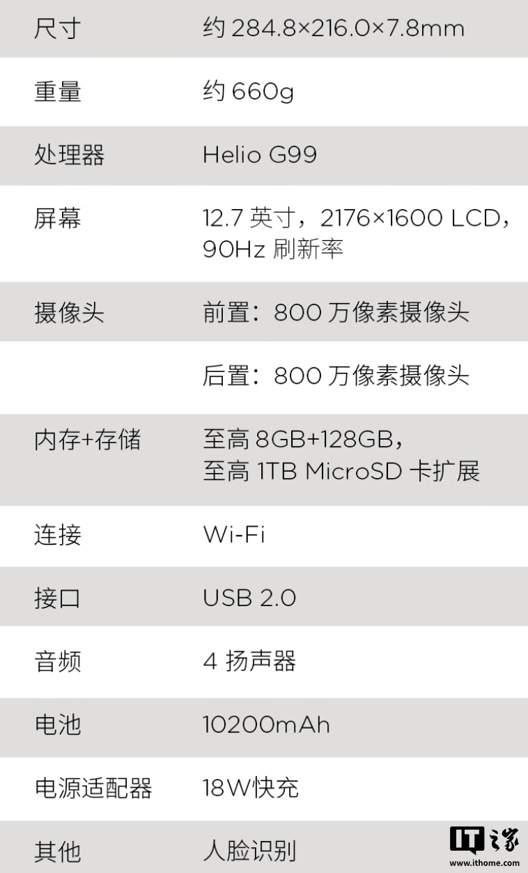 IT之家附联想来酷平板 12.7 规格参数如下: