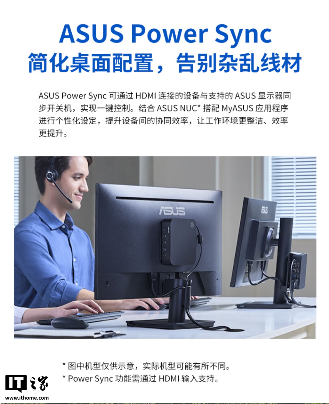 此外,这款显示器还支持 Power Sync 技术,可通过 HDMI 输入信号让电脑与显示器实现同步开关机,这样就能将迷你主机挂在屏幕背后,进一步提升桌面美观度,还支持 ASUS DisplayWidget Center 软件,可让用户直接使用鼠标调整屏幕设置。
