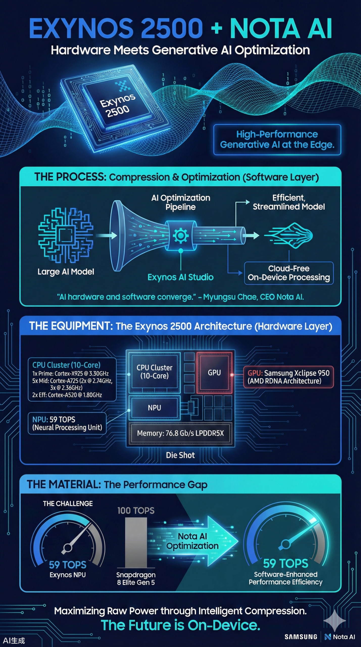 IT之家援引博文介绍,该工具能够充分利用 Exynos 2500 的硬件性能,在设备端直接运行先进的 AI 模型。Nota AI 的首席执行官 Myungsu Chae 强调,这次合作构建了一个软硬件深度融合的框架,目标是在边缘设备上实现高性能的生成式 AI。