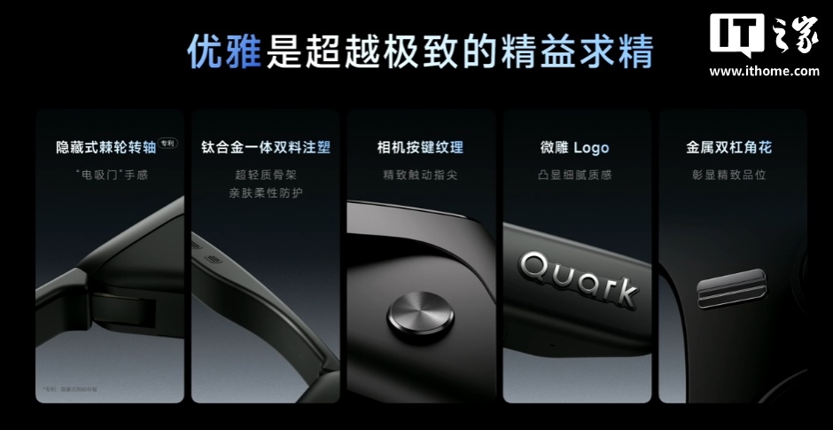 音频方面,夸克 AI 眼镜 S1 搭载 0.5mm 定制单元,金耳朵团队调教音质,支持空间音效、定向传音。
