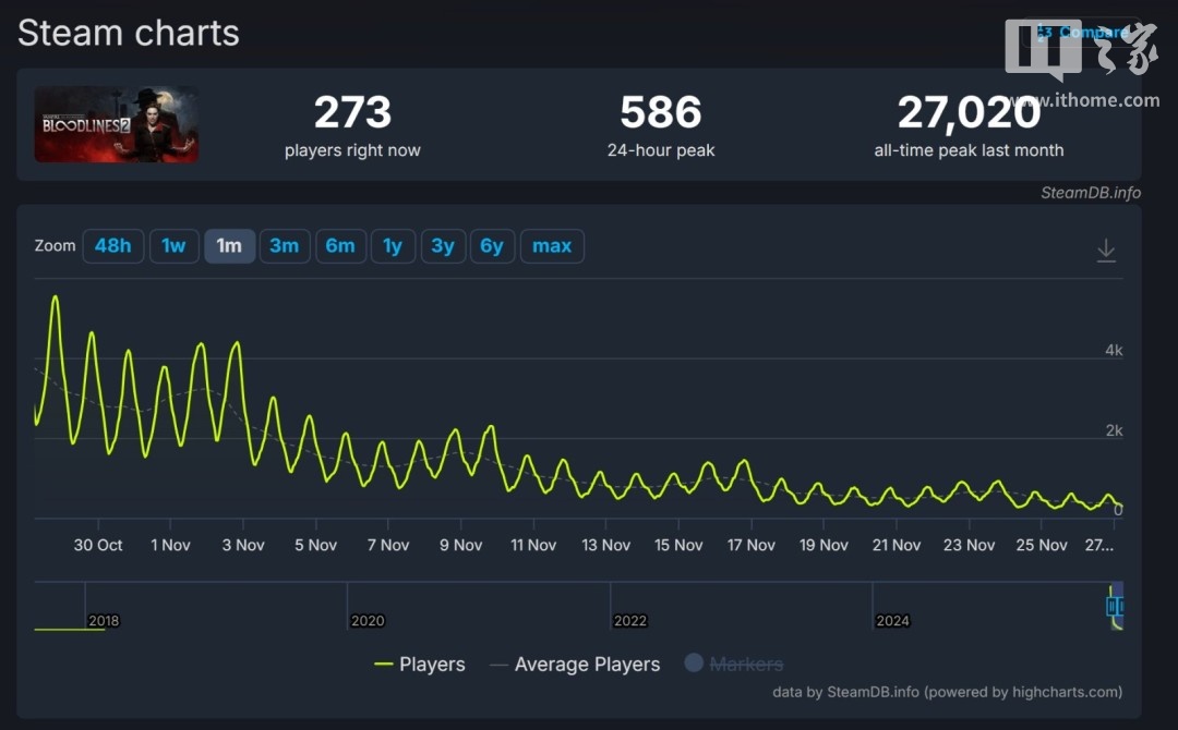 IT之家 11 月 27 日消息,Paradox Interactive(以下简称 P 社)近日在财务报告中承认,其于 2025 年 10 月发售的 RPG 游戏《吸血鬼:避世血族 2》未能达到商业预期,导致公司减记了约 3.55 亿瑞典克朗(IT之家注:现汇率约合 2.3 亿元人民币)的开发成本损失。