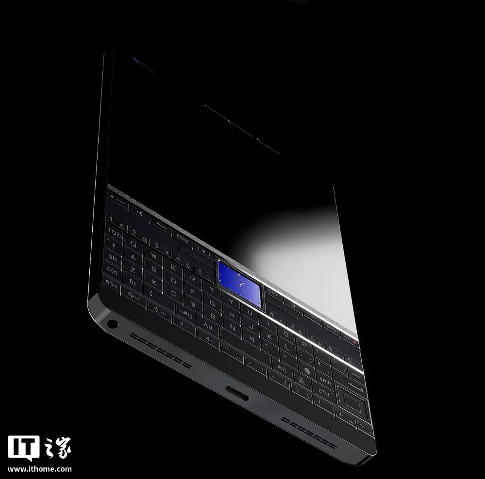 IT之家在此援引 NoteBook Check,这款手机的键盘面积相当大,下方还拥有一个快捷键区域及独立的数字按键,这意味着用户无需通过组合键就能输入数字,打字速度更快,键盘上方还镶嵌了一块副屏,支持常亮,可显示当前的时间,当设备处于使用状态时副屏会关闭,但仍可用于交互输入。