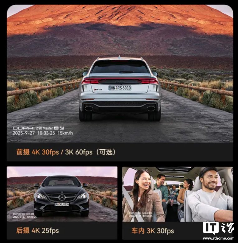 IT之家 12 月 1 日消息,盯盯拍今日发布了一款 Z90 Master 旗舰行车记录仪,以前后双索尼 STARVIS 2 IMX678 为核心,三通道实现 4K+4K+3K 全数字记录。