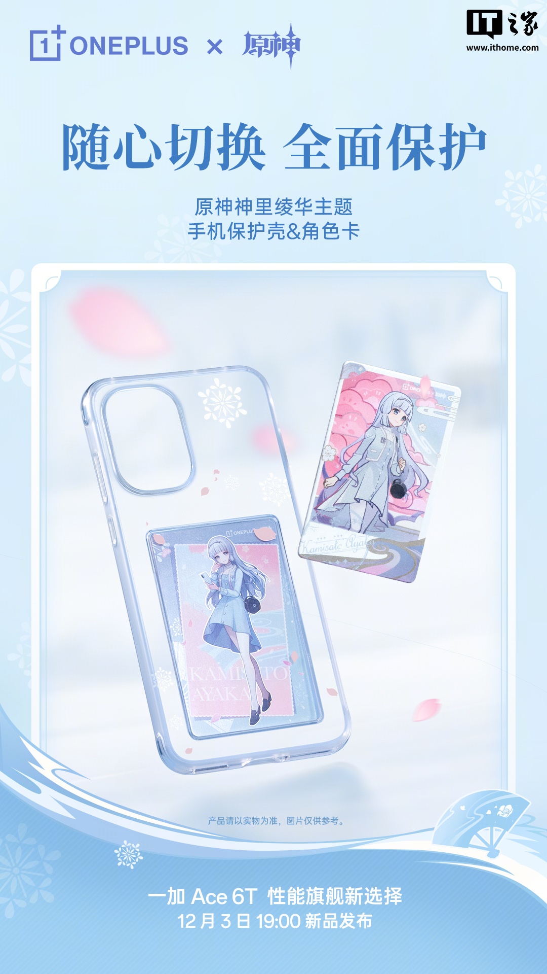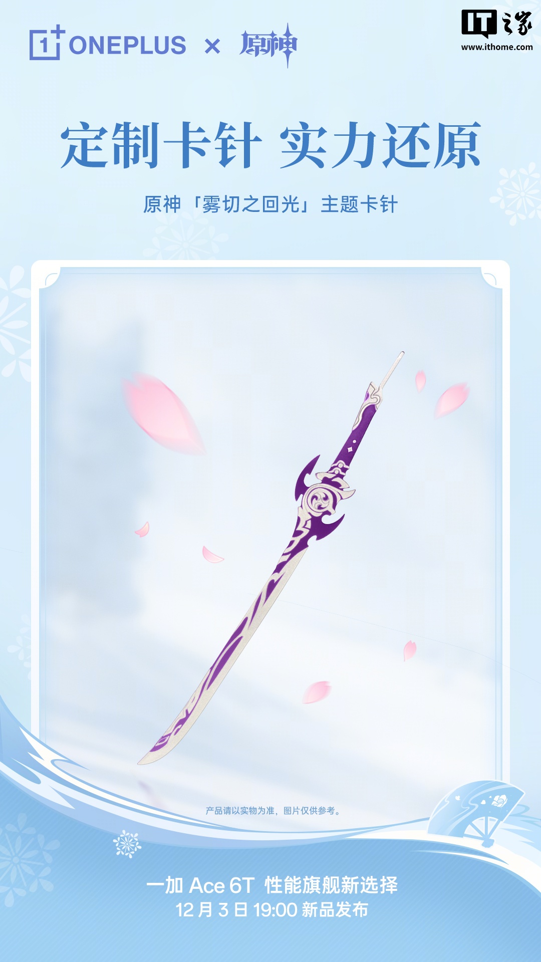 据介绍,一加 Ace 6T 原神神里绫华定制机采用「雪霁蓝」限定配色,同时背板印有「白鹭公主」专属纹样。
