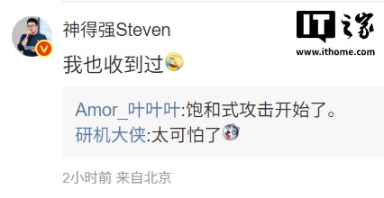 IT之家 12 月 2 日消息,小米集团董事长特别助理、战略市场部副总经理徐洁云今日在微博发文,分享了手机短信界面的截图,并附文:“突然就来了,真是无聊。”