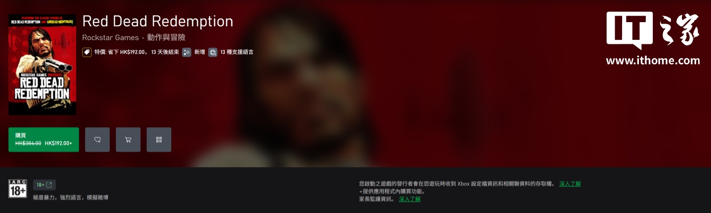 值得注意的是,如果玩家已经有 Xbox 360 的数字版《荒野大镖客:救赎》,那就可以免费升级到次世代版,GTA+ 主机订阅服务也同步上线了次世代版,玩家可以选择订阅,也可以在 Xbox 商城以 192 港元(IT之家注:现汇率约合 174.5 元人民币)的优惠价购买,相比原价 384 港元(现汇率约合 349 元人民币)有所降价。