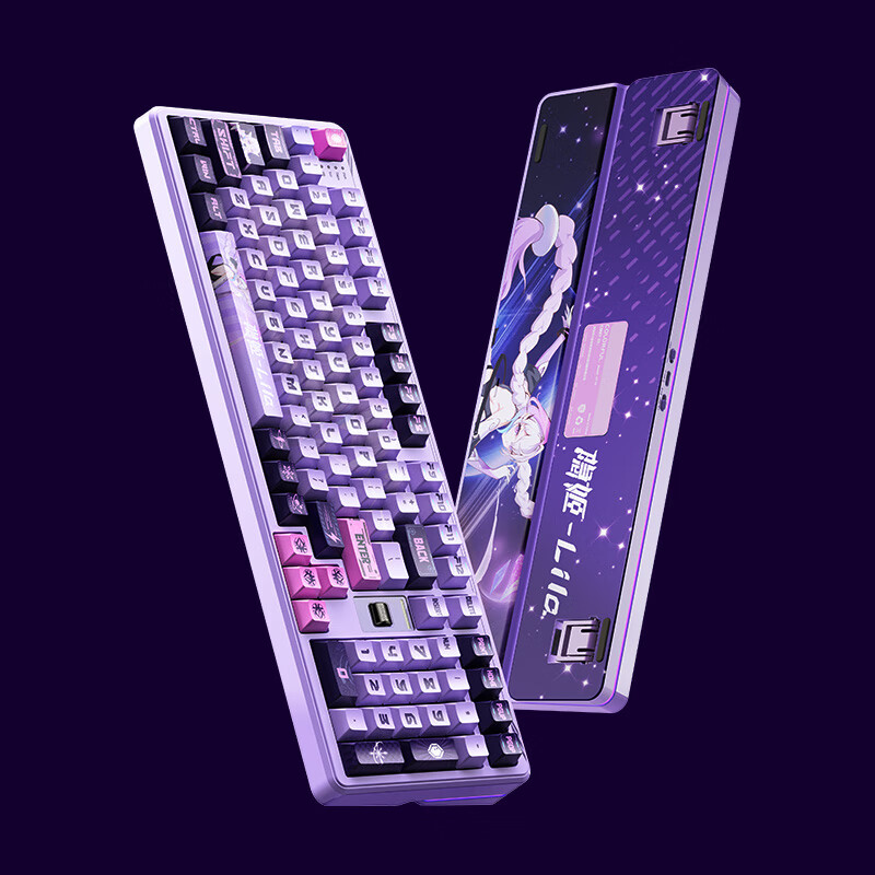 青羽 98 Ultra 整体上维持了此前 Pro 版本的大体框架,依旧采用方向键下沉、中置滚轮的 98% 配列布局,内部结构也依旧是弹力臂设计 + 五层消音填充,支持轴体热插拔、Web 驱动改键,此次的首发版本沿用了“紫绡 IP 定制款”配色。