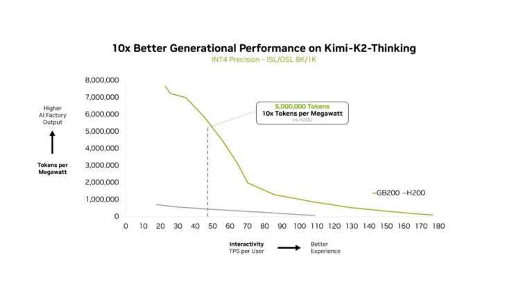 基于开源大语言模型 Kimi K2 Thinking、Deepseek-R1-0528、Mistral Large 3 测试,相比上一代 Hopper HGX 200 性能提升 10 倍。