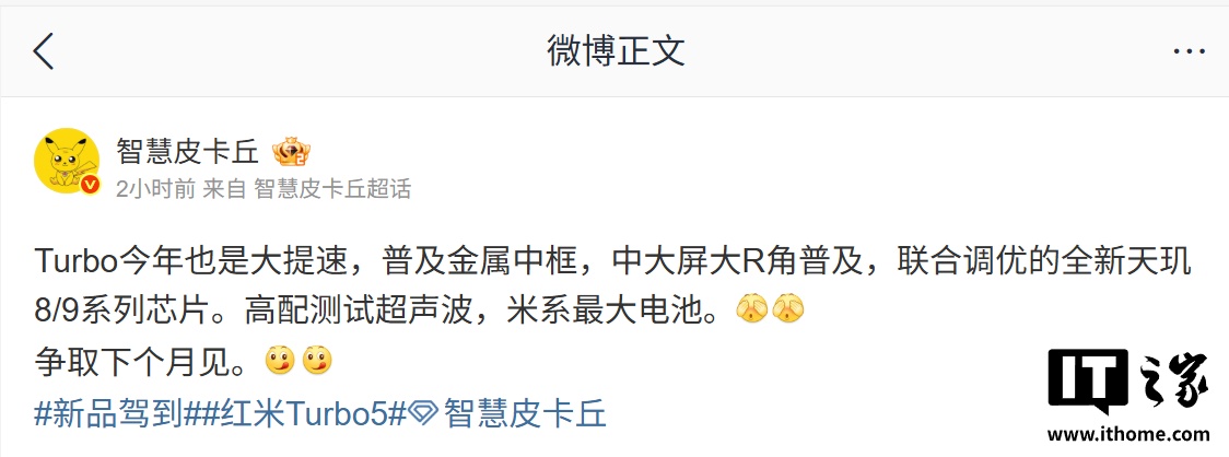 IT之家 12 月 5 日消息,博主 @智慧皮卡丘 今天在微博表示,某厂 Turbo 系列今年也是“大提速”。