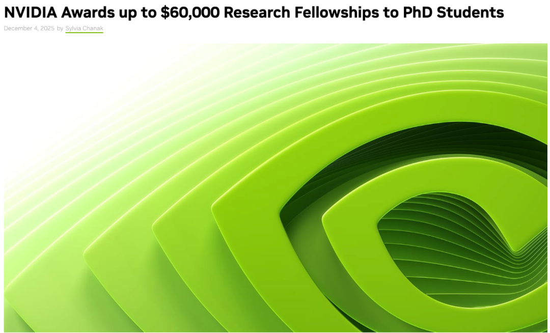 本文来自微信公众号:新智元(ID:AI_era),原标题《英伟达 2026 奖学金,8 位华人博士统治榜单!人均 6 万美金》