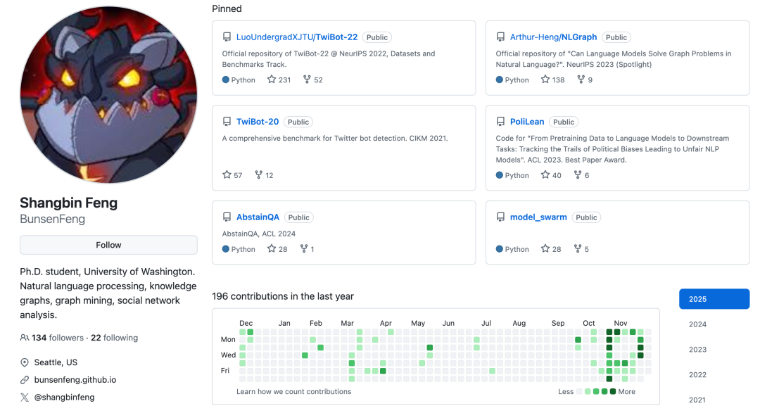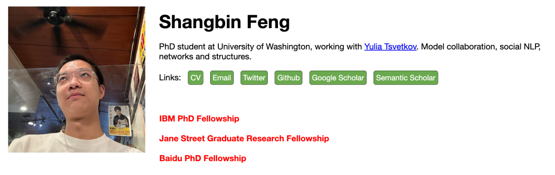 Shangbin Feng 是华盛顿大学的博士生,导师是 Yulia Tsvetkov。他的研究愿景是推动「模型协作」,即让多个在不同数据上由不同人员训练的机器学习模型能够相互协作、组合与互补。他致力于构建一个开放、去中心化且协同化的 AI 生态系统,解决单一模型在知识覆盖和隐私保护方面的局限性。
